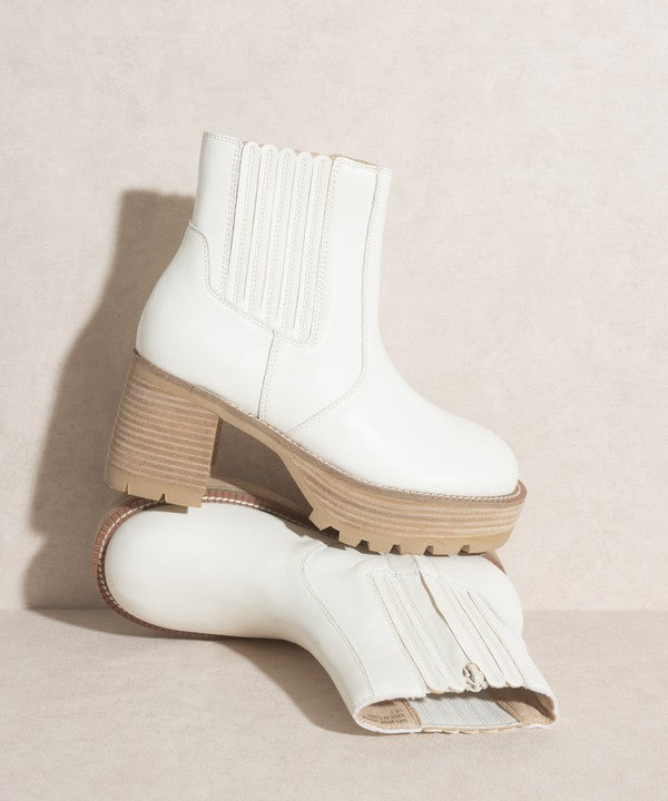 Pull up and roll out. The Aubrey is a ready to go boot with high quality elastic gussets this pull on style features a rounded toe placed on a chunky platform.Upper Material:man made upperCamel Suede UpperInsole Material:Padded InsoleSole or Heel Material:Leather wrap heelShaft Height: 5"Heel Height: 3"The front platform: 1.5"Types of closures: zipperCircumference of shoe opening: 10.5"Bottom of the sole: 5.25"CHELSEA, BOOTIE, SHORT BOOT, ANKLE BOOT, VINTAGE, CLOG, TREAD