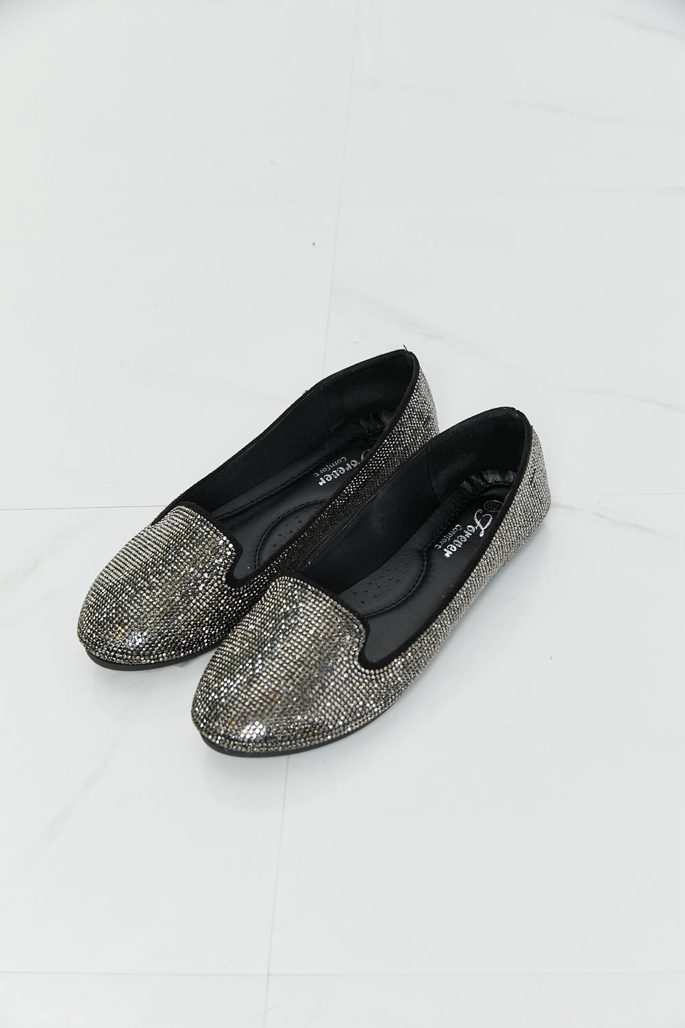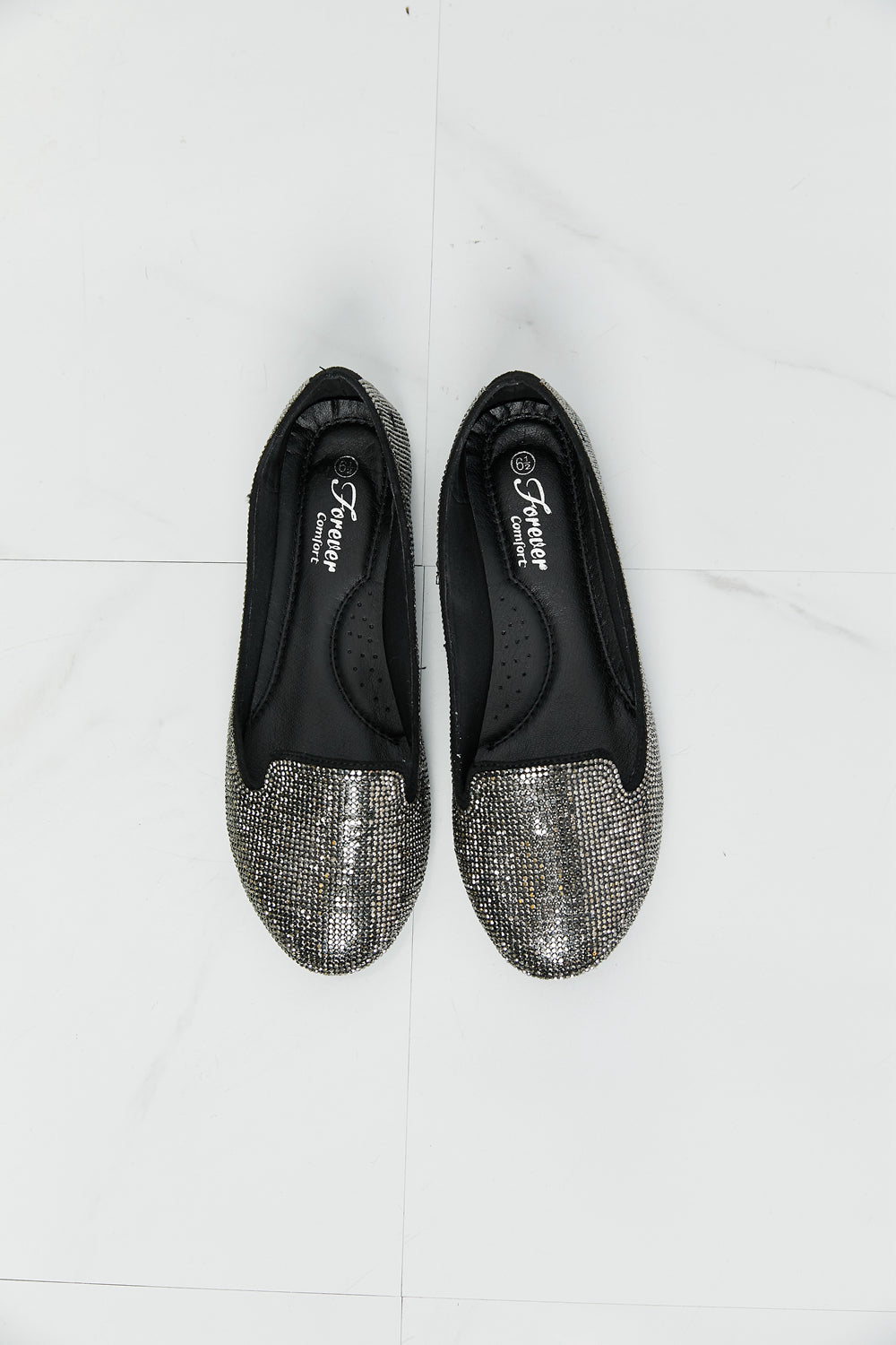 With their delicate rhinestone trim, these pretty flats will bring a little sparkle to your outfit. The shimmery fabric is comfortable on your feet while the round toe and solid color pattern make them polished enough to wear to work or out in the evening.
